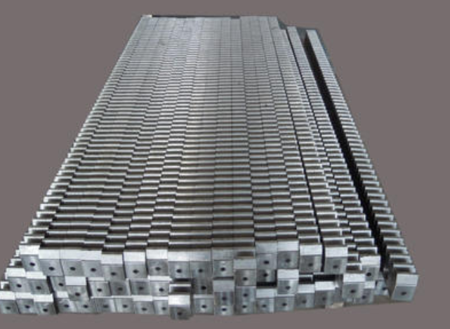 齿条加工厂家齿条刀具的一切齿形参数———齿距、齿厚、全齿高、螺旋角、后角、齿形角等均通过该工序一次成形。齿条采用接刀工艺技巧可低落大尺寸齿条刀具的加工难度,拓展线切割机床的有效加工范围。由于被加工齿条刀具的长度较大,且加工时为片面夹持,夹紧方向随螺旋角的差别而变化,与程度面不垂直,所以对夹具的刚性要求较高。 线切割机床的上、下喷嘴是按程序编制的加工轨迹挪动,喷嘴四周有较大空间,所以可根据程序的加工方向将齿条刀具的一端固定在加工路程内,另一端置于喷嘴旁的空隙处,当加工完刀具的L1段后,松开夹具,将工件在夹具定位面中沿X轴方向斜向挪动,使刀具的L2段完全进入可加工范围内并夹持紧固,而后通过测量已加工出的基准面找出第二段加工程序的起割点,通过执行第二段加工程序,即可实现整把齿条刀具的线切割加工。 由于第2段加工程序因此第1段加工程序的加工面作为参考基准,所以即使存在加工误差,也可保持误差方向的一致性,减小加工误差的影响。在加工实际中发现,如以第1段程序加工出的前一齿侧面作为测量基准效果更好,由于该面也是计划基准面,如将其作为测量基准面,则可包管基准重合。工件挪动时应保持方向不变,所以对夹具定位精度的要求也较高。在计较挪动距离时,则应考虑电极切割丝与该基准面非垂直接触惹起的测量误差,应将距离换算为X轴方向后再挪动至起割点。